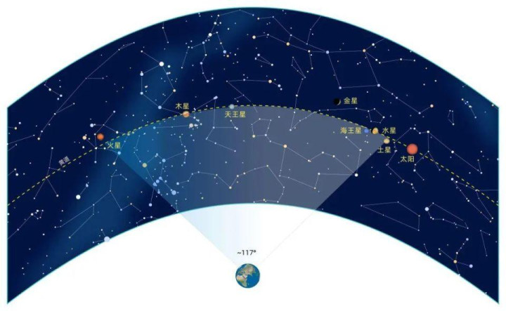 而海王星的亮度只有7.8等,高度角也很低,不仅需要借助大口径天文望远镜的帮助,还会受低空尘埃的影响,观测很有挑战性。对社会公众来说,所谓“七星连珠”,真正肉眼可见的大概率只有金星、木星、火星三颗行星。